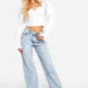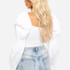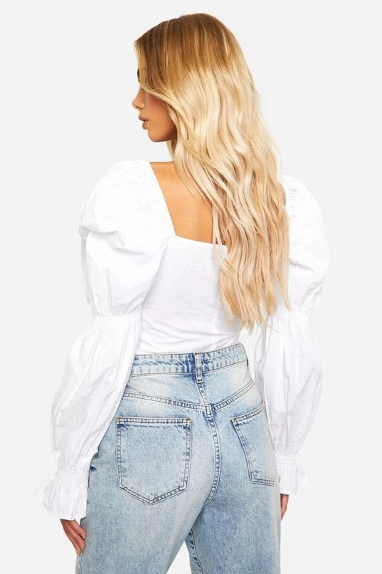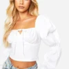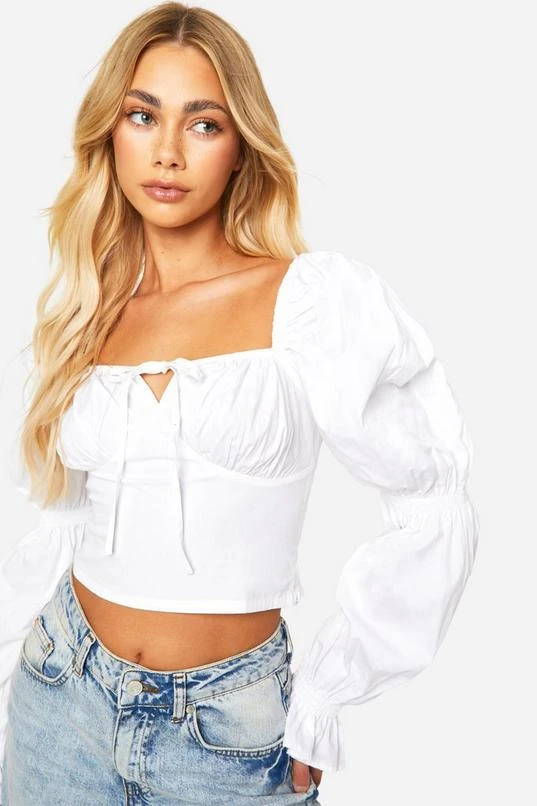 BOOHOO Cotton Poplin Puff Sleeve Tie Corset