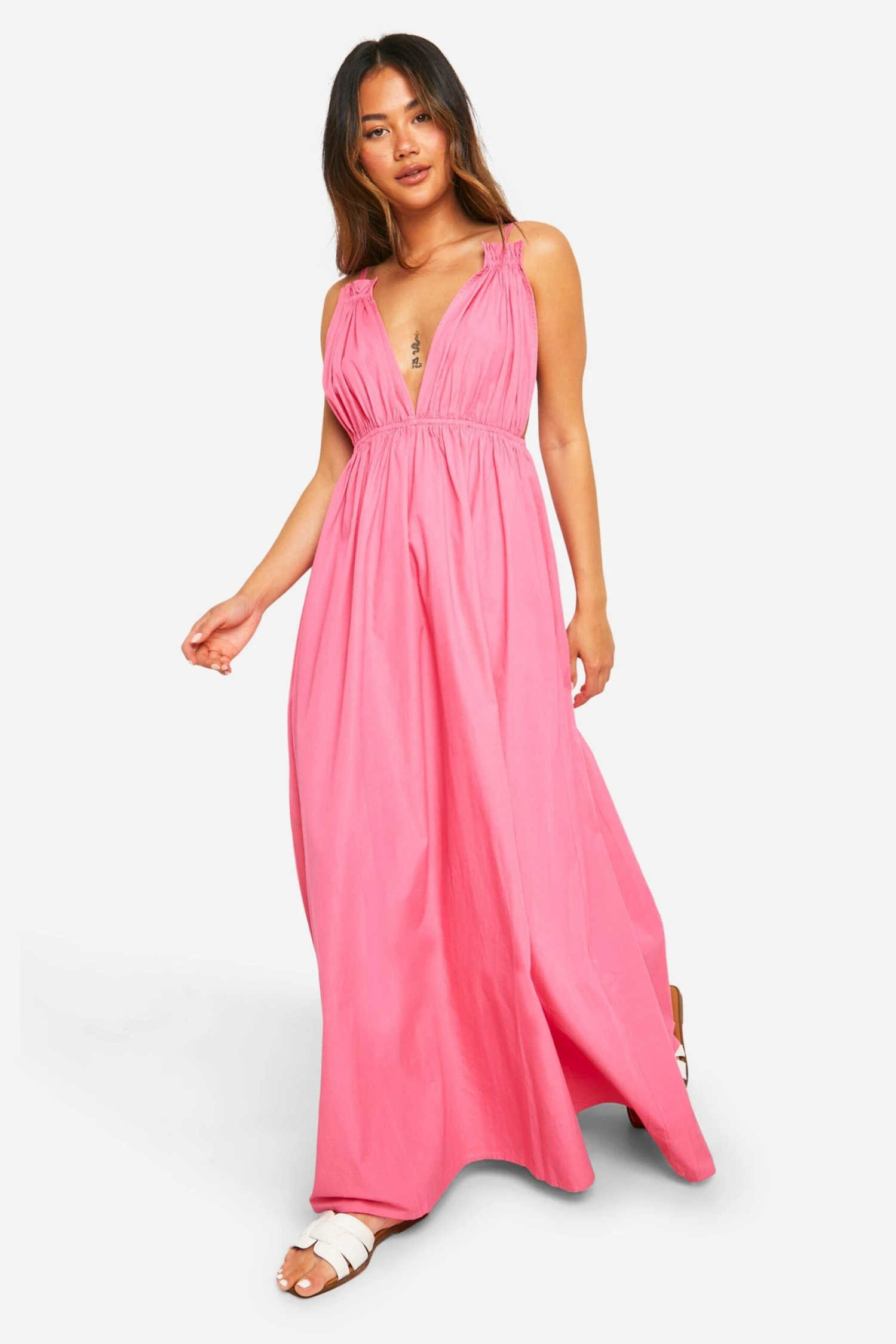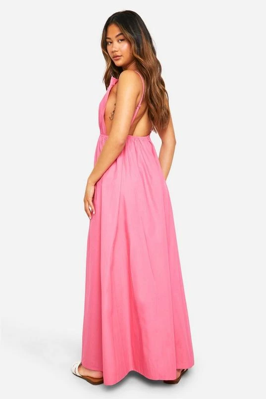 BOOHOO Cotton Poplin Strappy Maxi Dress