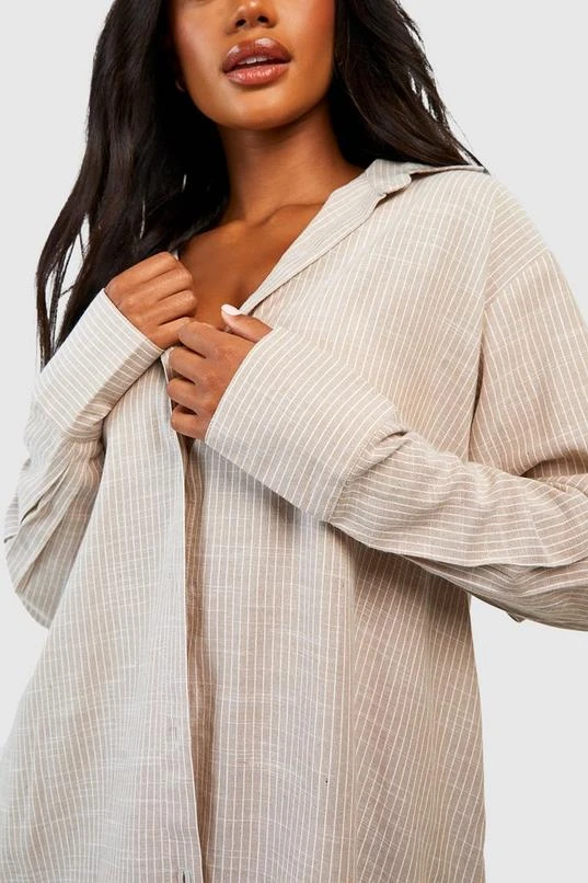BOOHOO Cotton Tonal Pinstripe Oversized Pajama Shirt