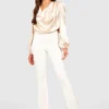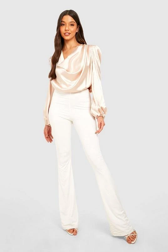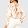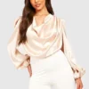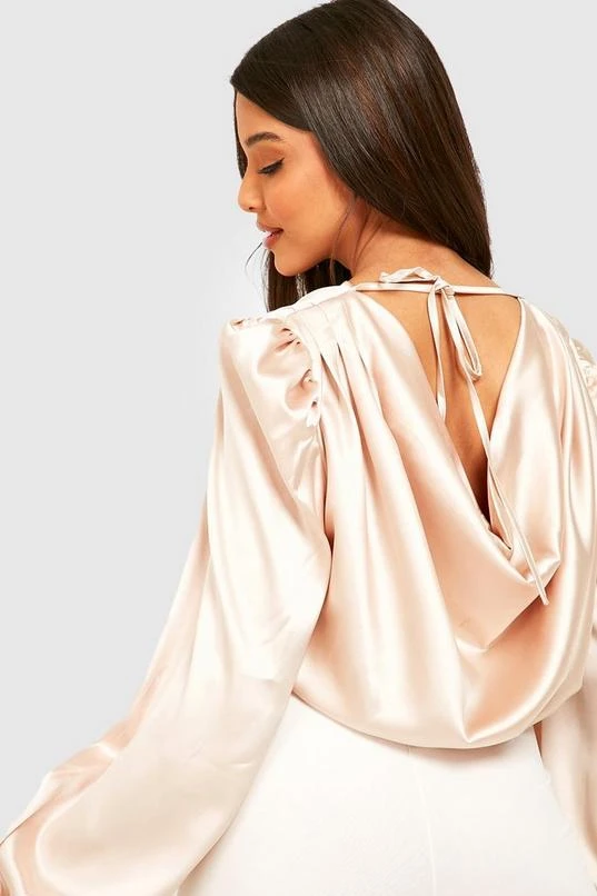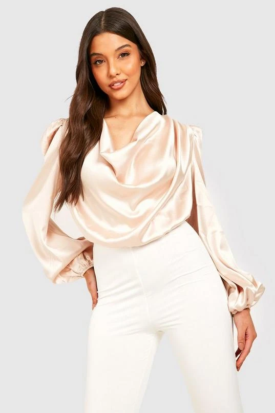 BOOHOO Cowl Front Puff Sleeve Satin Top