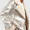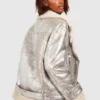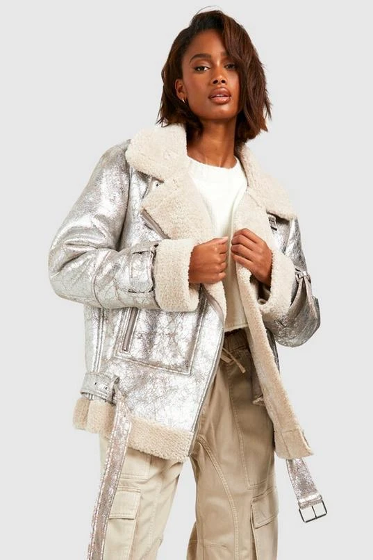 BOOHOO Cracked Metallic Longline Aviator Jacket