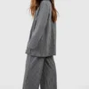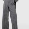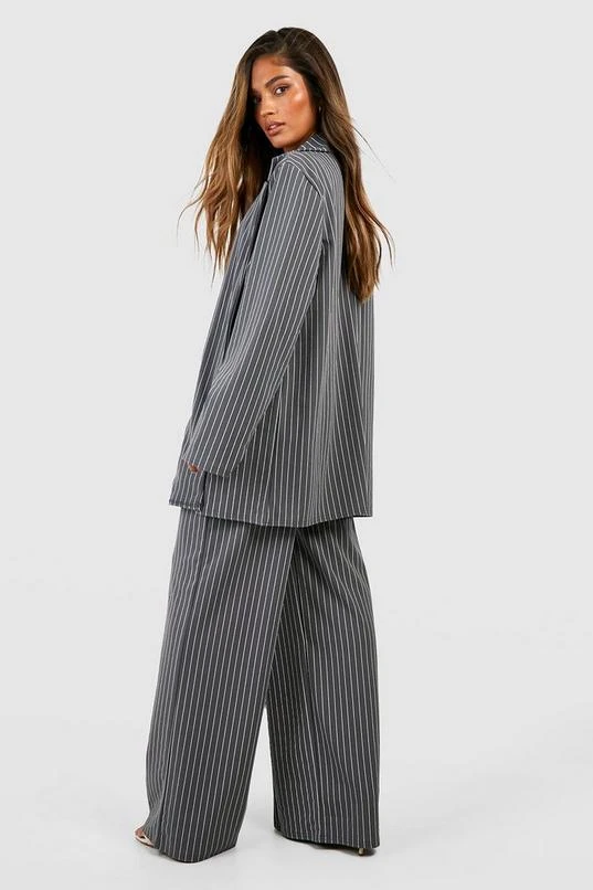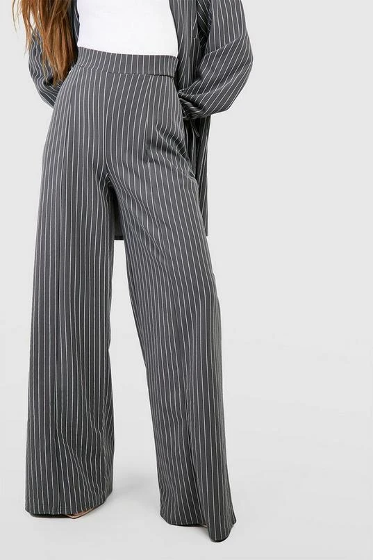 BOOHOO Crepe Pinstripe Wide Leg Pants