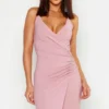 BOOHOO Crepe Plunge Wrap Detail Maxi Dress