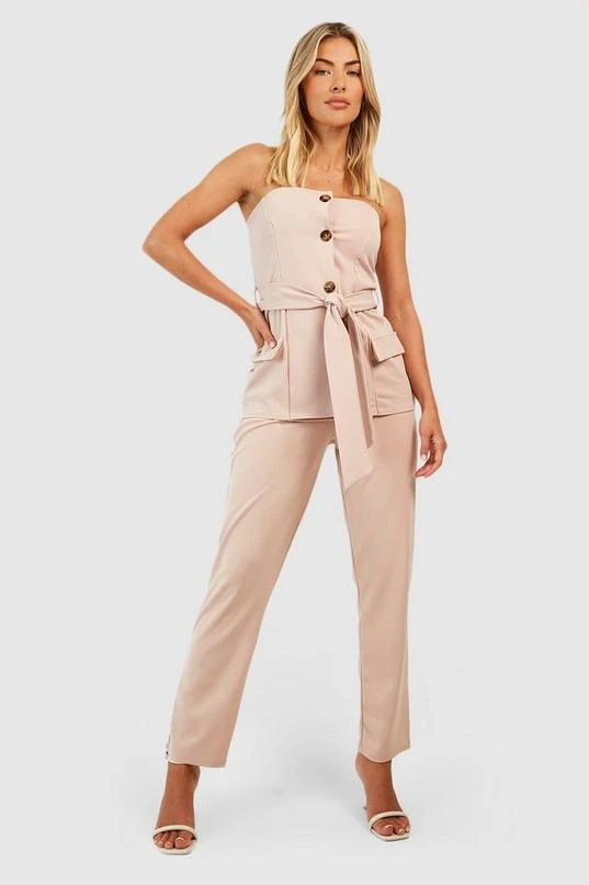 BOOHOO Crepe Tie Waist Longline Bandeau