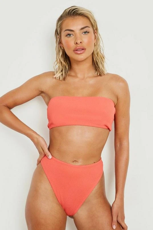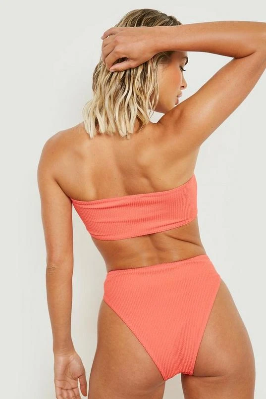 BOOHOO Crinkle Bandeau High Waist Bikini Set
