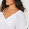 Cover up your bathing suit or bikini with this swimwear cover-up, perfect for any day at the beach or sat by the pool. This lightweight piece is typically worn over a swimsuit to protect your modesty, provide shelter from the sun and reduce exposure to UV rays, but just because the beach cover-up is practical doesn’t mean it can’t be fashionable too. Thoughtfully styled, complementing your swimwear, this sheer beach cover-up will bring the entire look together.