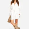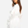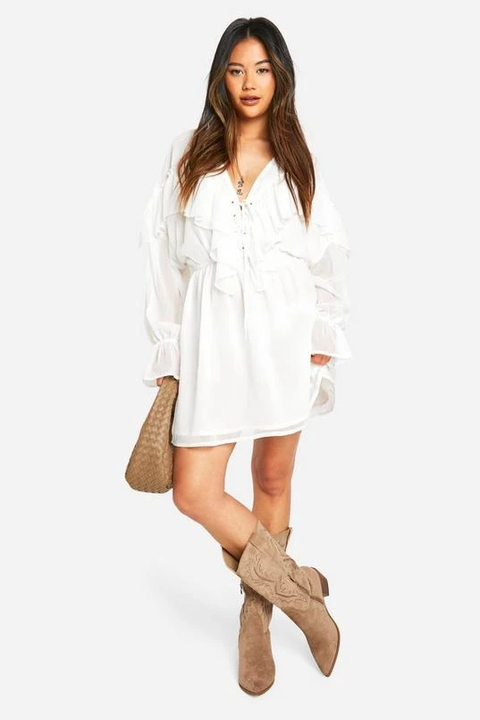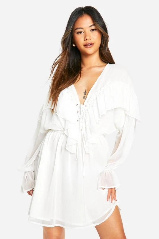 BOOHOO Crinkle Chiffon Ruffle Long Sleeve Mini Dress