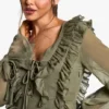 BOOHOO Crinkle Chiffon Ruffle Shift Dress