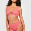 BOOHOO Crinkle O-Ring High Waisted Bikini Set