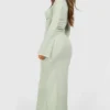 BOOHOO Crinkle Ruched Long Sleeve Maxi Dress