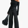 BOOHOO CRINKLE TEXTURE SCALLOP HEM Asymmetric BELL SLEEVE TOP