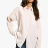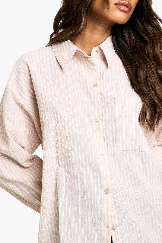 BOOHOO Crinkled Textured Stripe Oversized Shirt