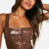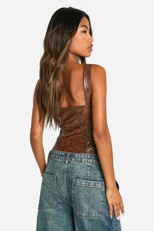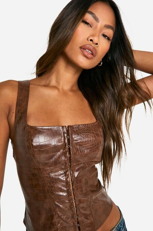 BOOHOO Croc Faux Leather Hook And Eye Corset