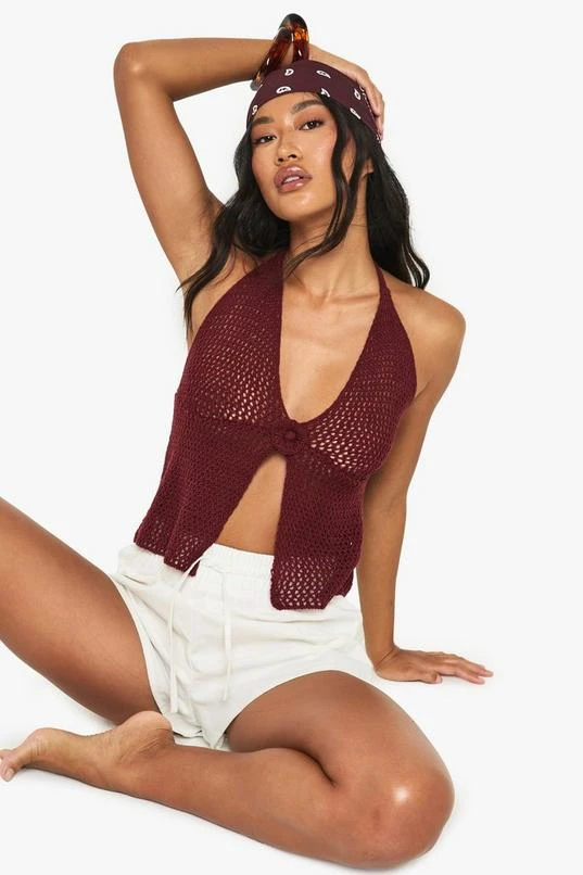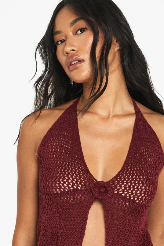 BOOHOO Crochet Flower Detail Floaty Knitted Top