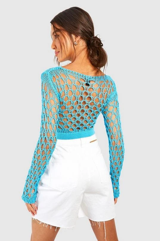 Flex your style and create more depth in your look with this crochet knitwear. Break the mold and define a new era of knitwear with a crochet sweater; the dense cross stitch and unique detailing will help you stay cozy in style. Layer over lace crop tops and high-waisted jean shorts in the evenings as the weather cools, or let the intricate detail add feminine flair with a crochet cardigan and wide-leg pants in the office. Just match with some block heels to finish the look.
