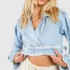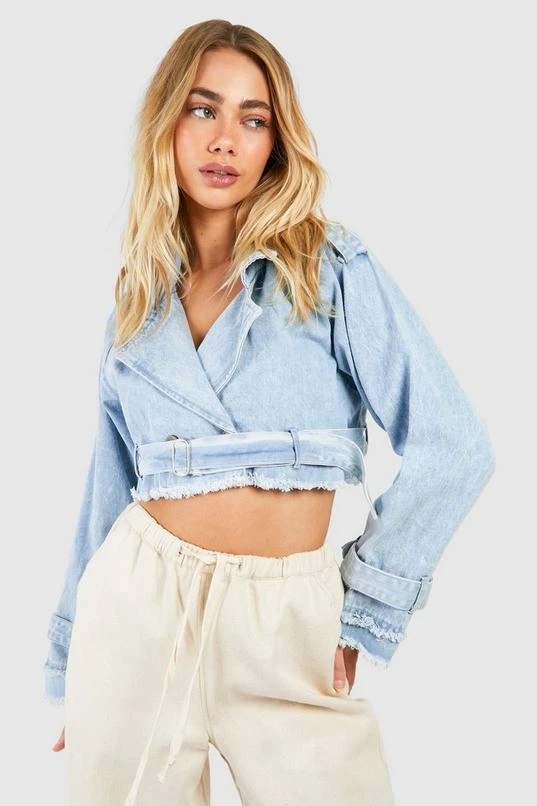 BOOHOO Crop Denim Trench Coat