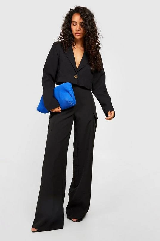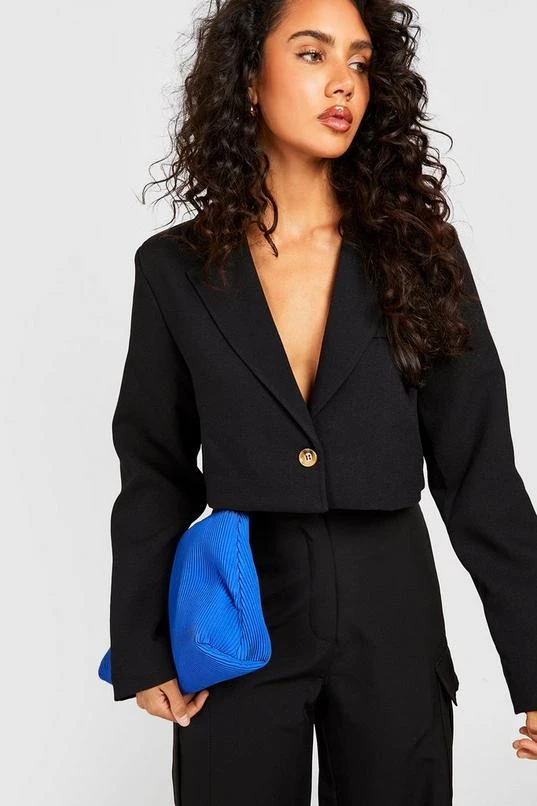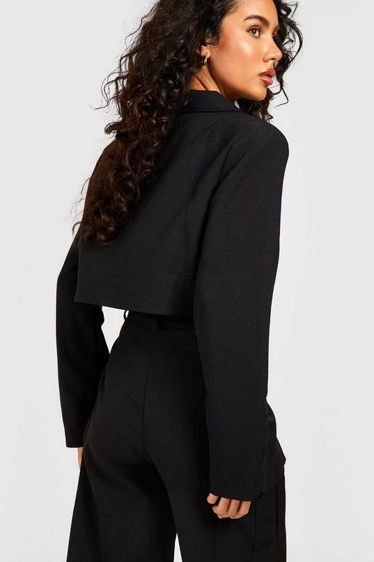 BOOHOO Cropped Textured Boxy Tailored Blazer