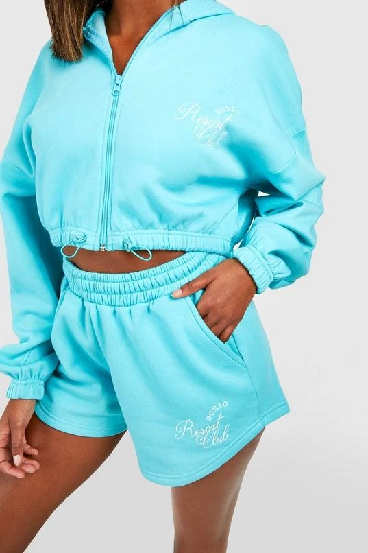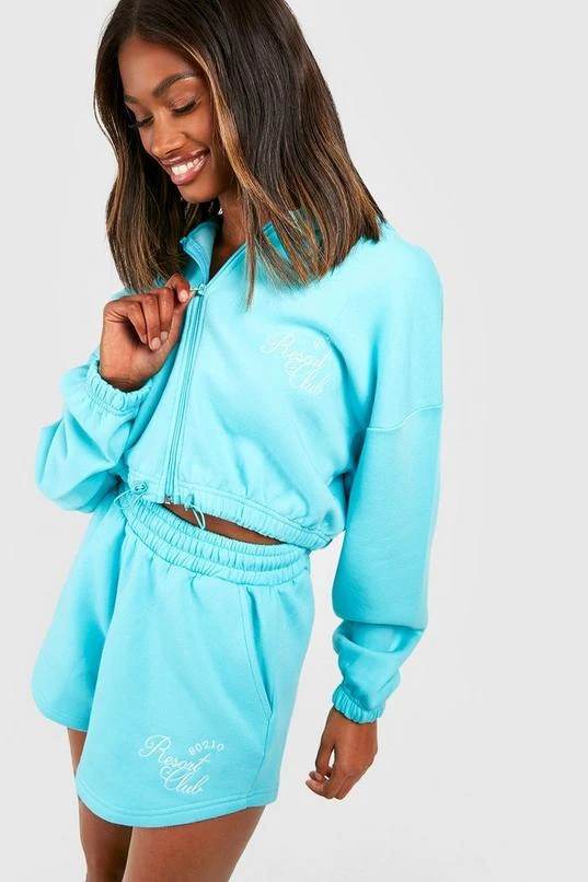BOOHOO Cropped Zip Through Embroidered Short Tracksuit