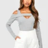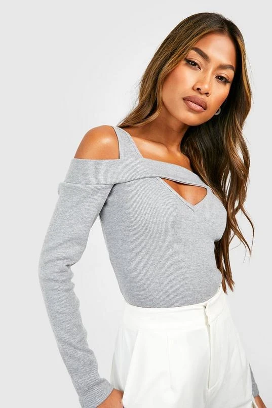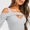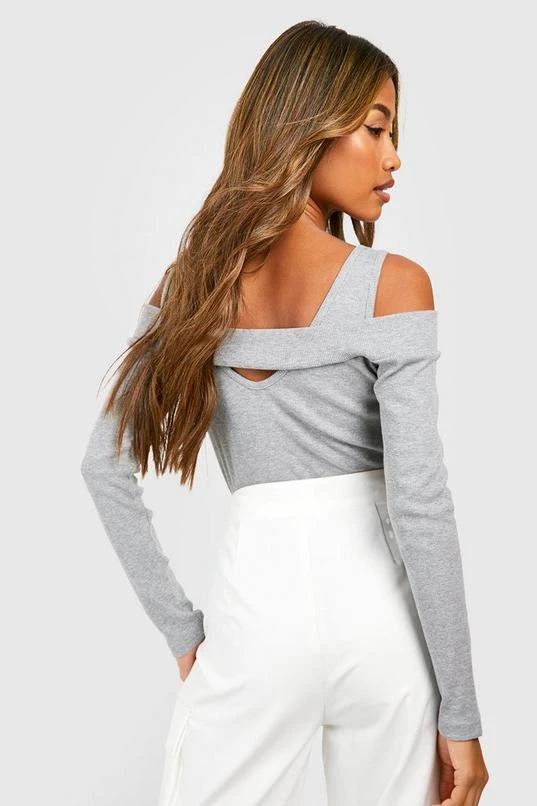 BOOHOO Cut Out Cold Shoulder Ribbed Top