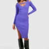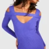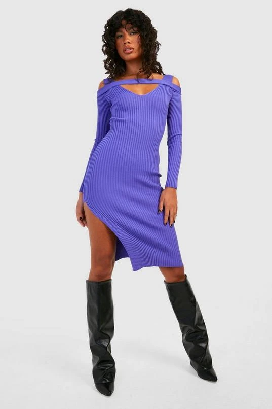 BOOHOO Cut Out Detail Split Hem Knitted Midi Dress