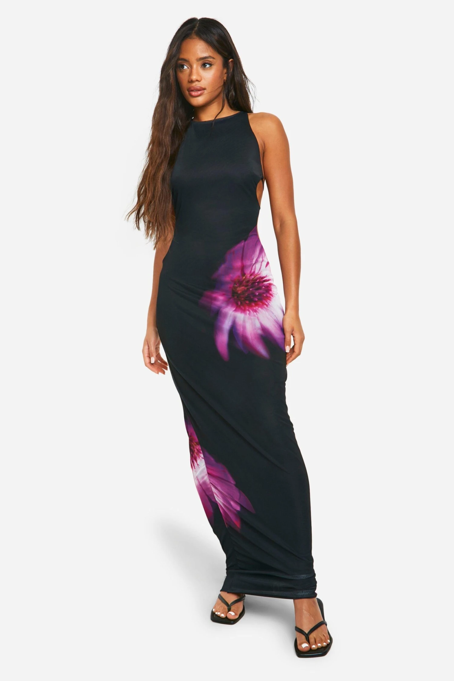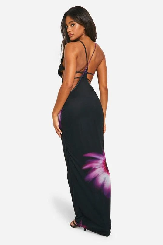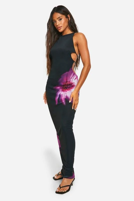 BOOHOO Cut Out Strappy Floral Mesh Maxi Dress