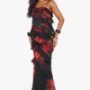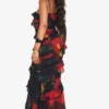 BOOHOO Dark Floral Ruffle Maxi Dress