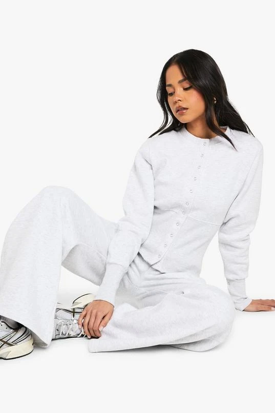 BOOHOO Deep Hem Popper Bomber Sweatshirt Tracksuit
