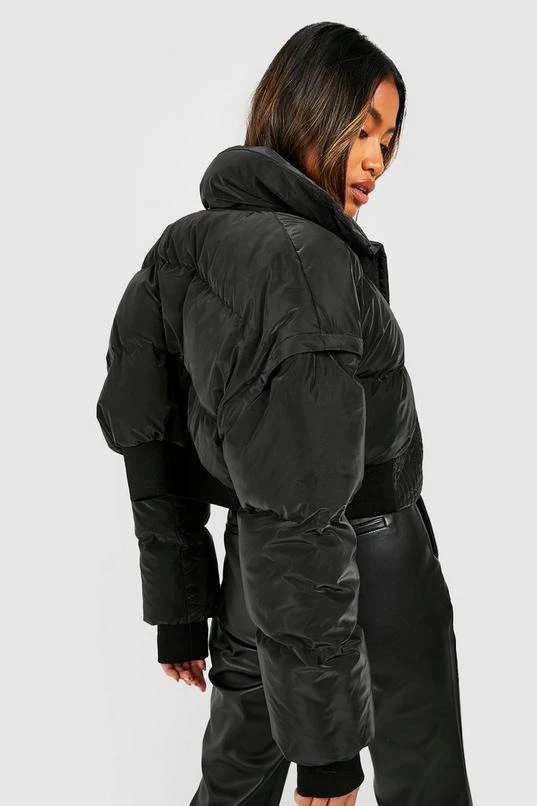 BOOHOO Detachable Sleeve Crop Puffer