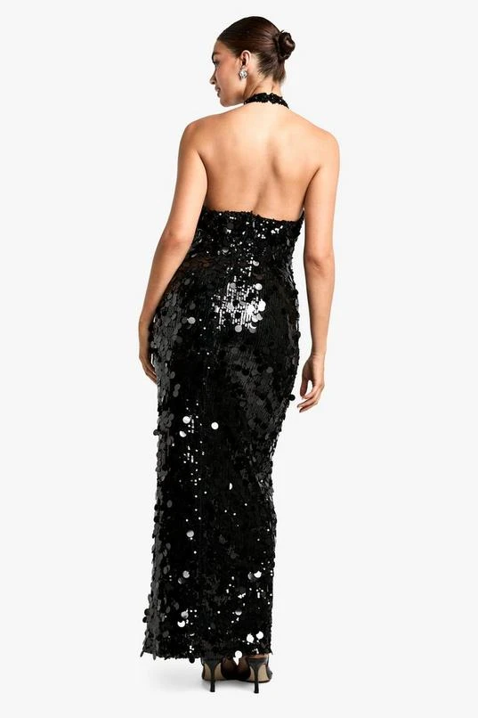 BOOHOO Disc Sequin Halterneck Maxi Dress