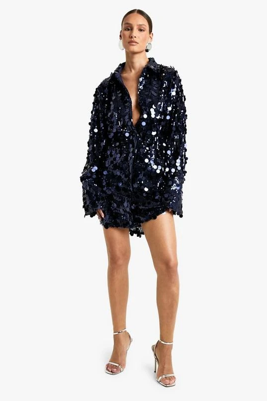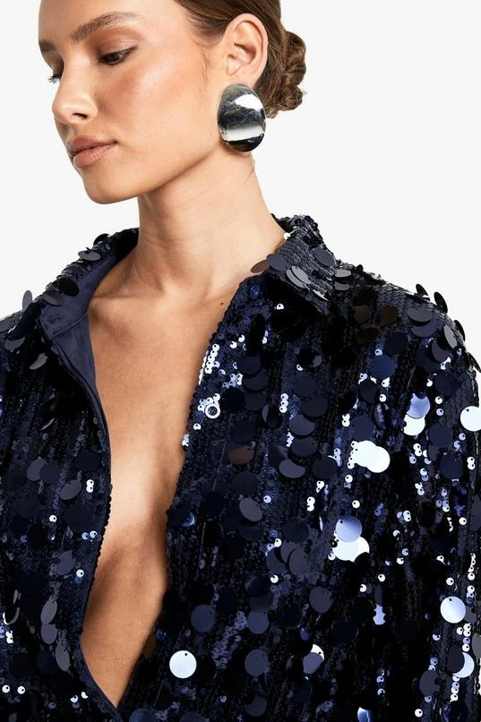 BOOHOO Disc Sequin Shirt Dress