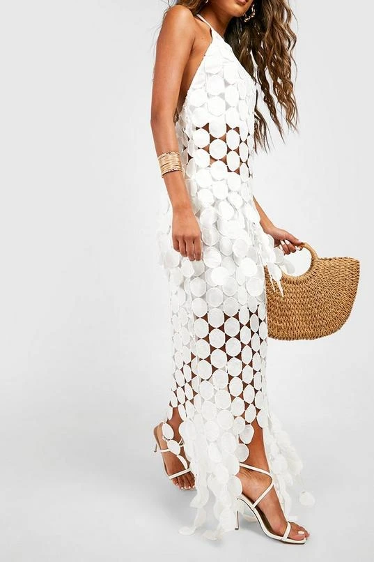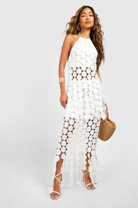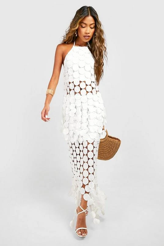 BOOHOO Disk Crochet Asymmetric Hem Maxi Skirt