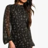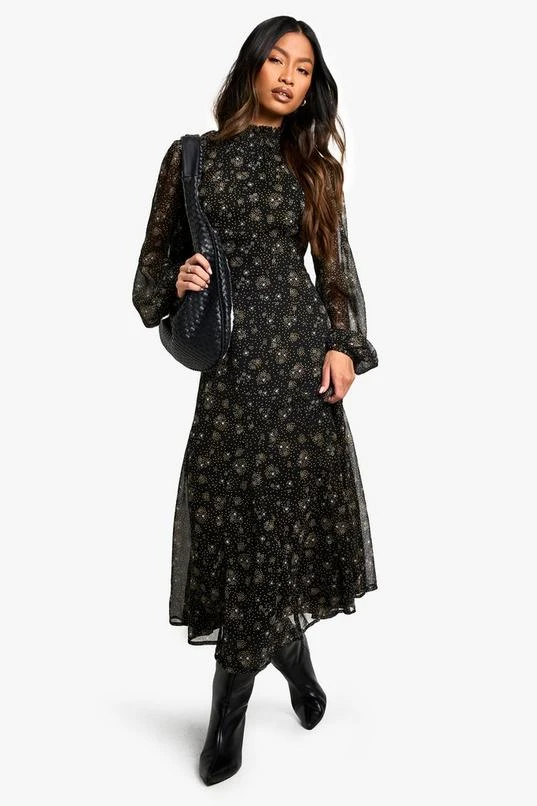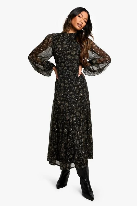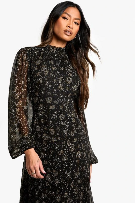 BOOHOO Ditsy Floral Chiffon High Neck Midaxi Dress