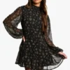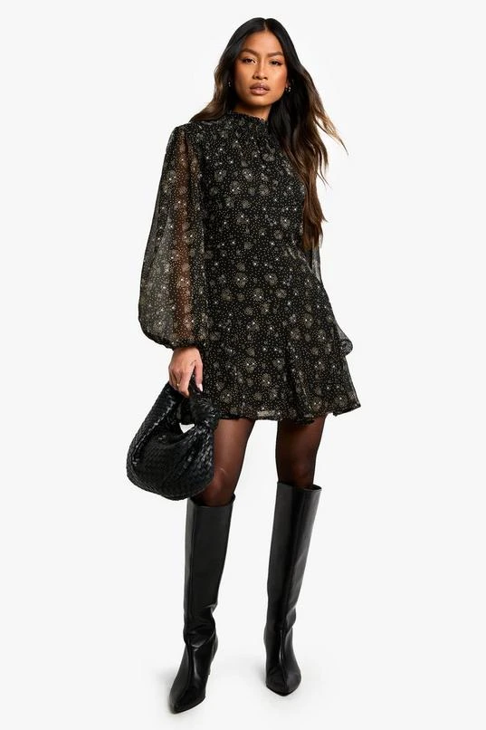 BOOHOO Ditsy Floral Chiffon High Neck Skater Dress