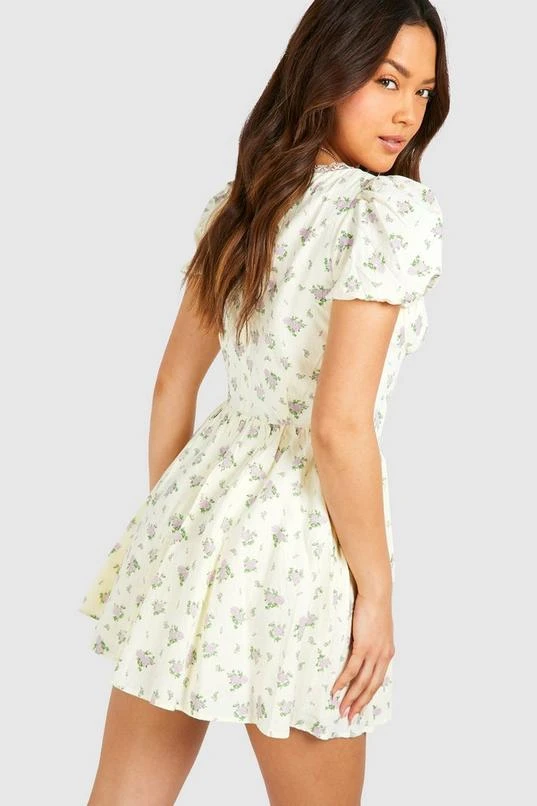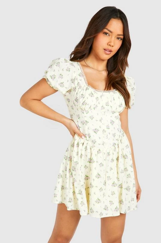 BOOHOO Ditsy Floral Puff Sleeve Milkmaid Mini Dress