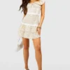 BOOHOO Ditsy Lace Trim Milkmaid Skater Dress