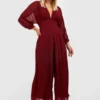 BOOHOO Dobby Balloon Sleeve Culotte Jumpsuit