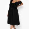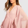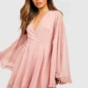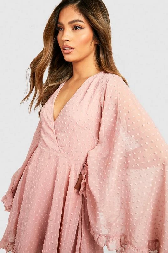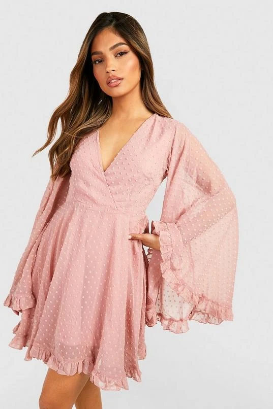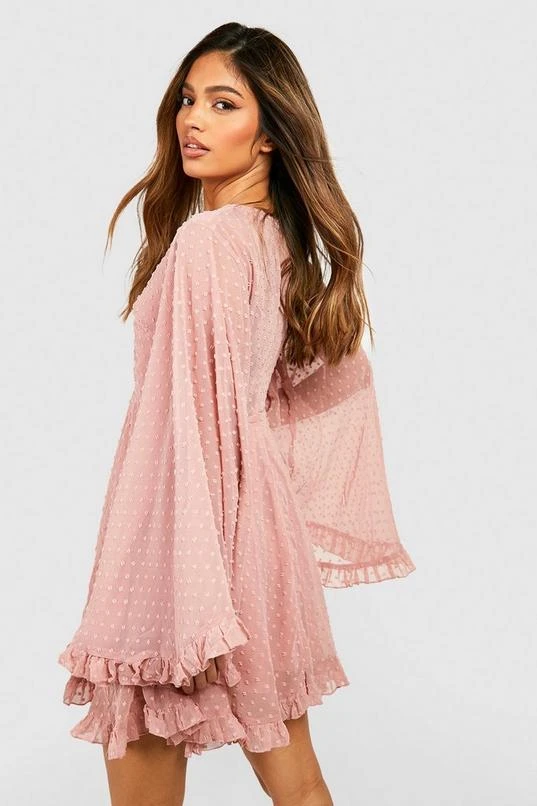 BOOHOO Dobby Chiffon Wide Sleeve Skater Dress