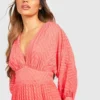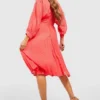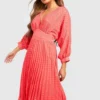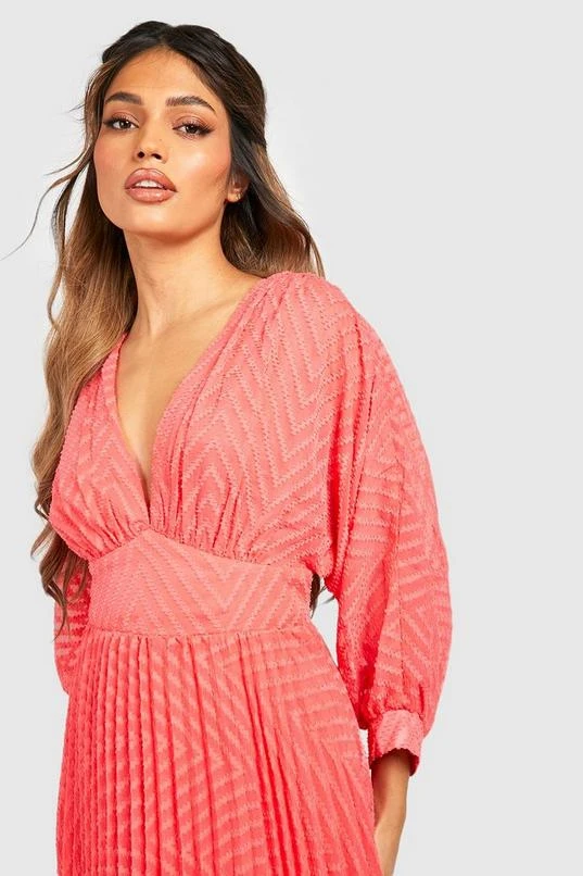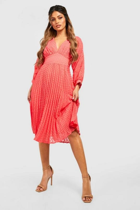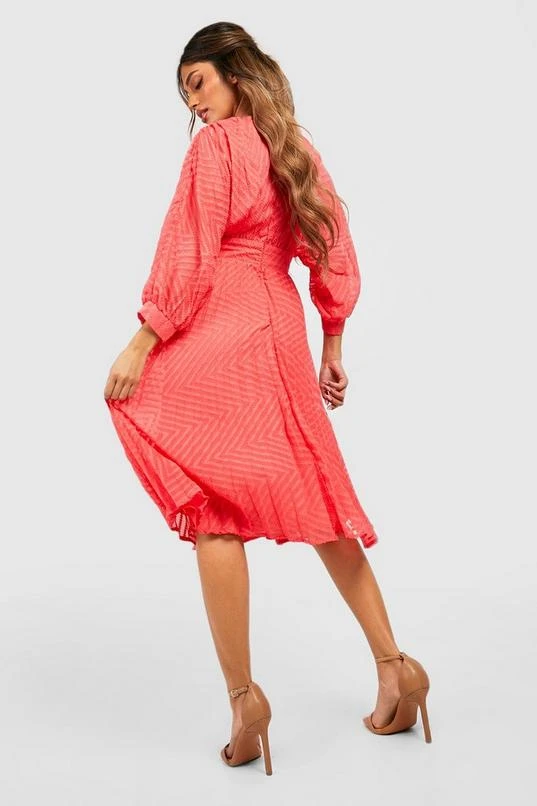 BOOHOO Dobby Mesh Pleated Balloon Sleeve Midi Dress