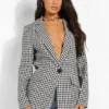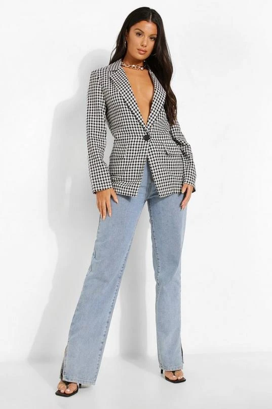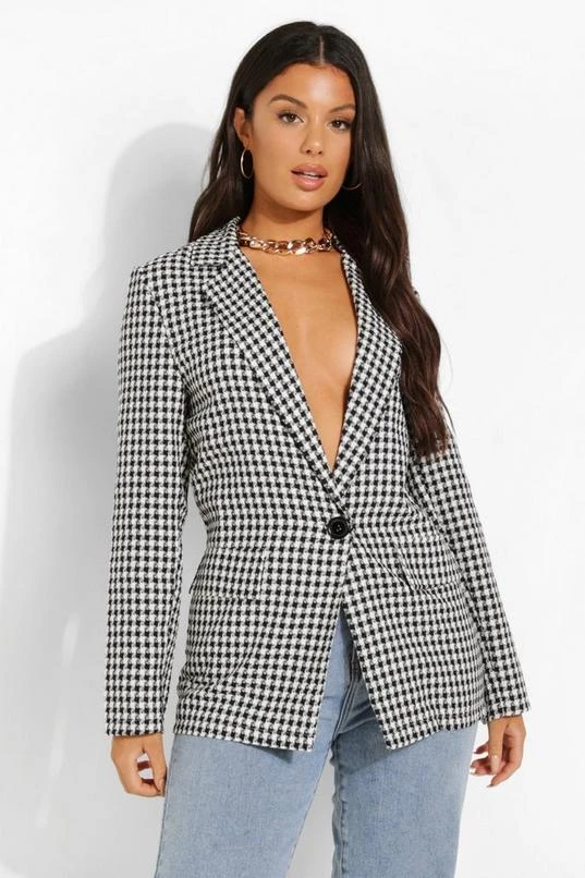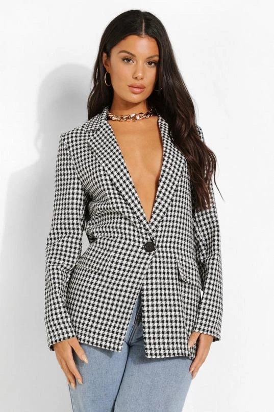 BOOHOO Dogtooth Flannel Tailored Blazer