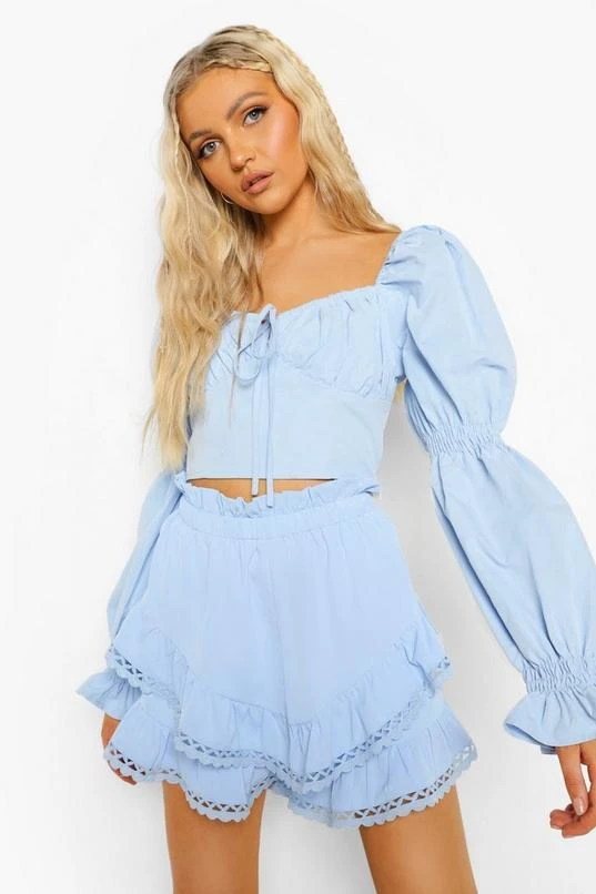 BOOHOO Double Frill Lace Trim Shorts