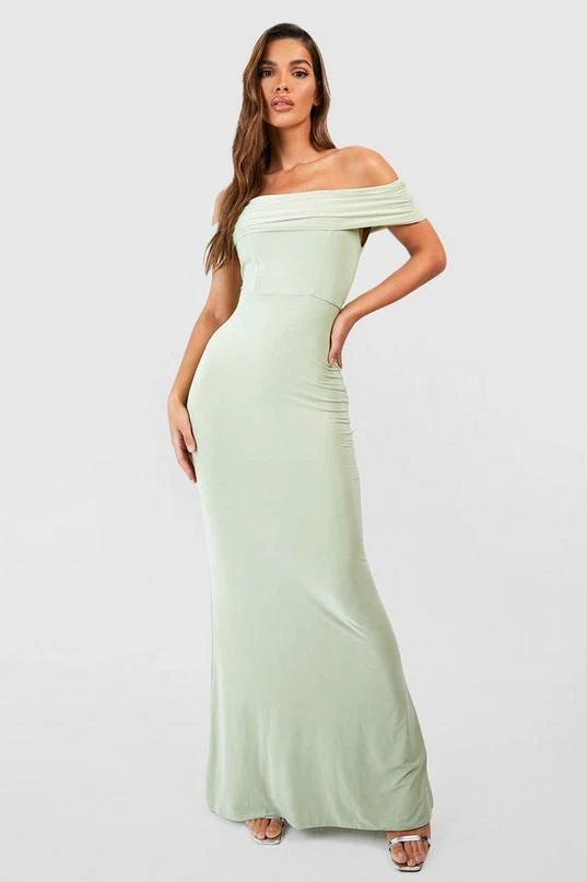 BOOHOO Double Slinky Off The Shoulder Maxi Dress