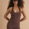 BOOHOO Dsgn Studio Sports Supersoft Seam Detail Padded Halterneck Top