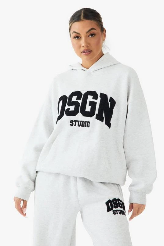 BOOHOO Dsgn Studio Towelling Applique Oversized Hoodie
