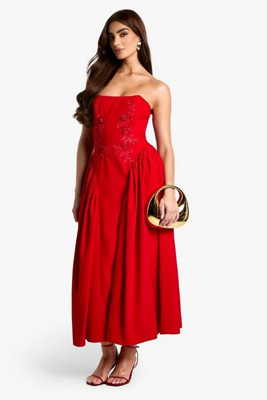BOOHOO Embellished Woven Crepe Midaxi Skater Dress