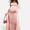 BOOHOO Emily Shak Maternity Strappy Cowl Neck Dress And Duster Coat