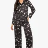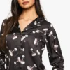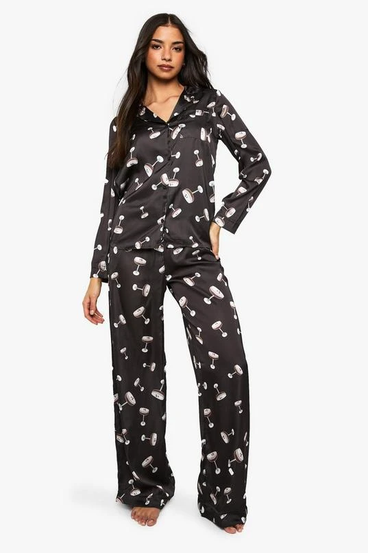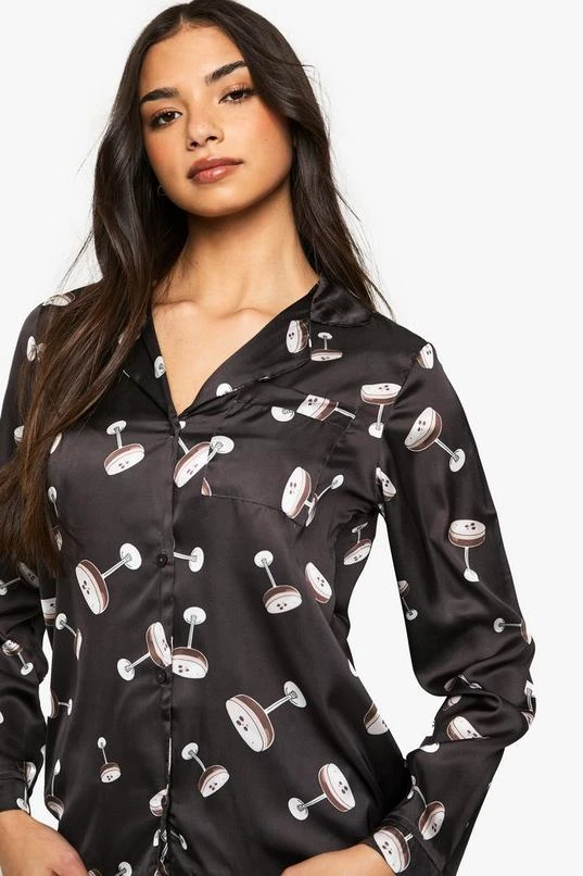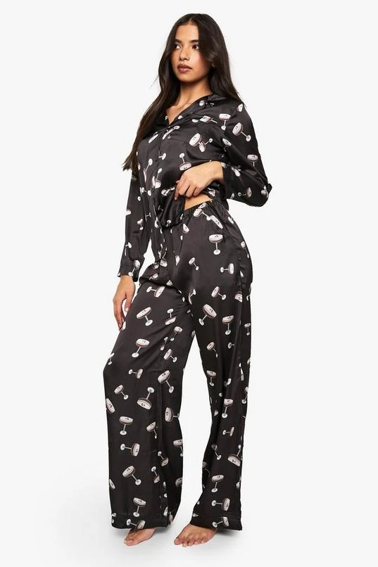 BOOHOO Espresso Martini Print Satin Long Sleeve Shirt & Trousers Pyjama Set
