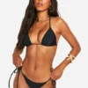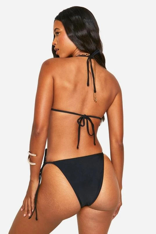 Cut shapes in this triangle bikini, the most popular style of bikini in women’s swimwear. This triangle string bikini is flattering for all shapes and sizes, featuring a triangle bikini top with padding inserts strung on thin straps and matching bottoms that tie at the side. With tie neck and back straps, you can style this triangle bikini in multiple ways, from halter-neck and criss-cross to bandeau and cross neck – the choice is yours.
