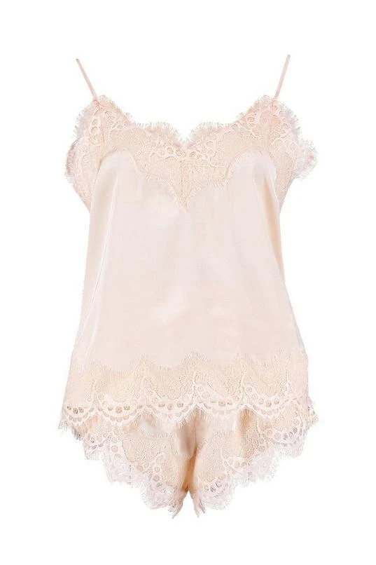 BOOHOO Eyelash Lace Trim Cami And Pajama Short Set
