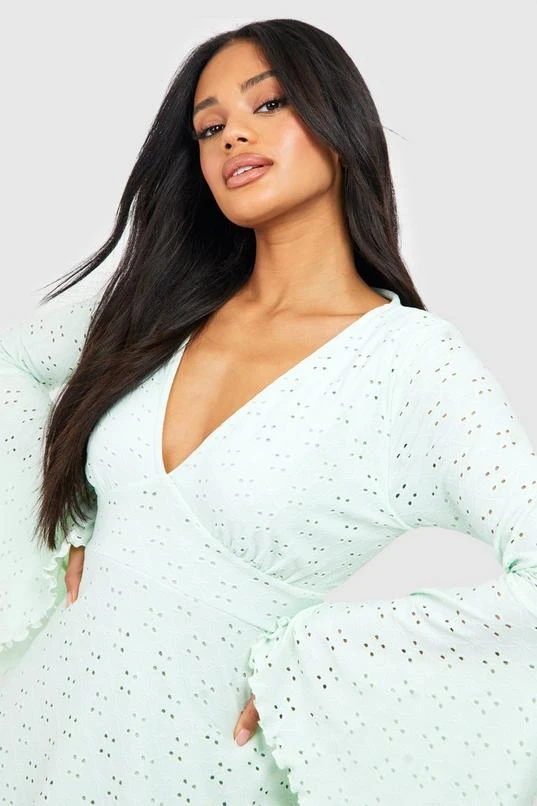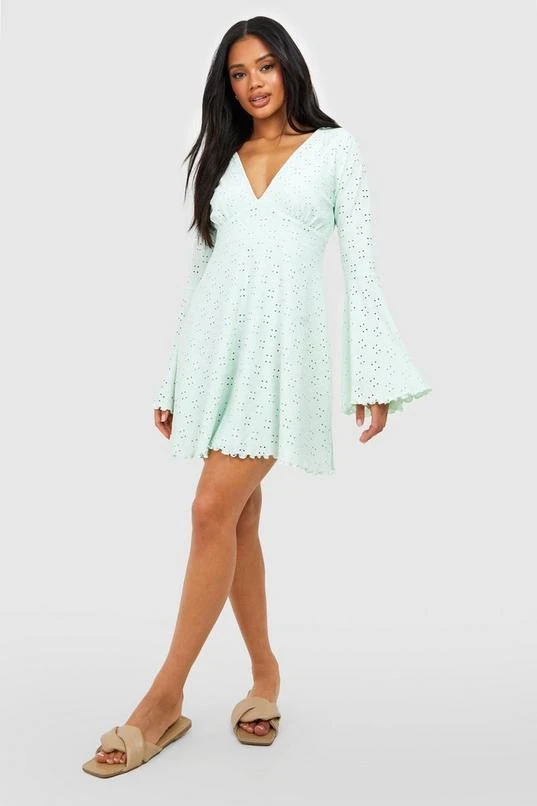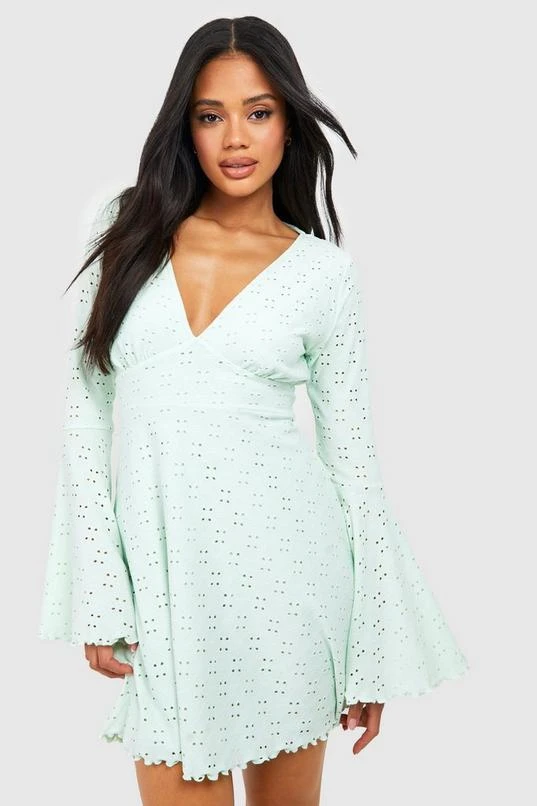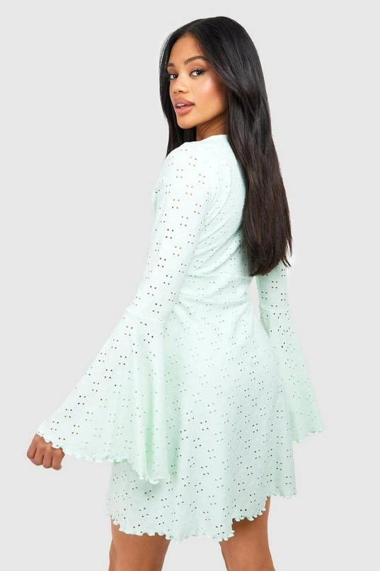 BOOHOO Eyelet Flare Sleeve Mini Dress