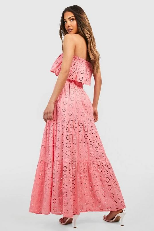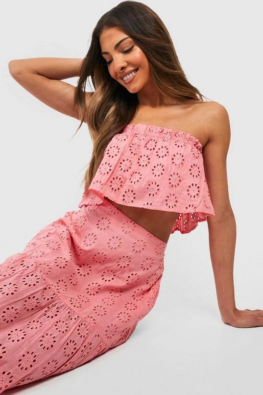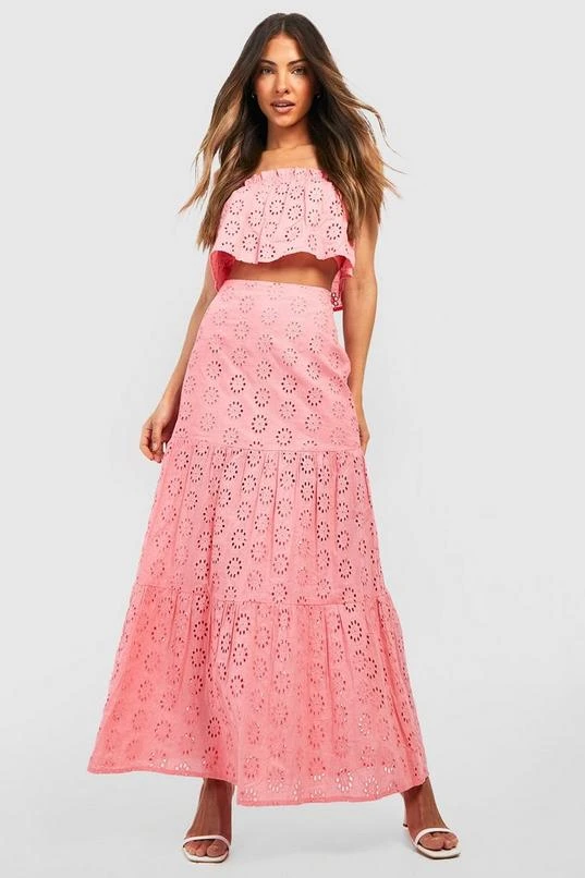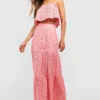 BOOHOO Eyelet Off The Shoulder & Tiered Maxi Skirt